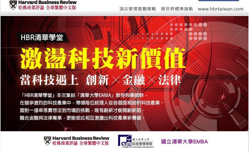 【HBR清華學堂】激盪科技新價值:當科技遇上創新 x 金融 x 法律,歡迎報名參加。